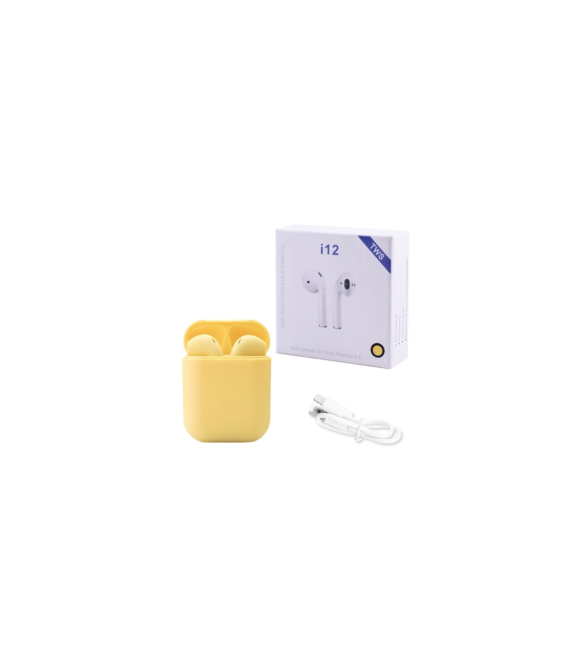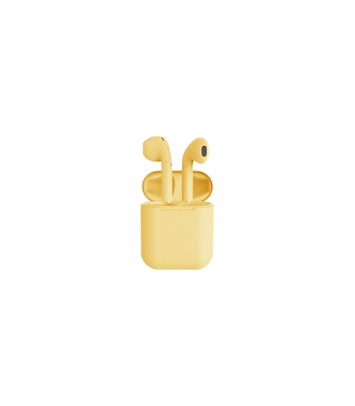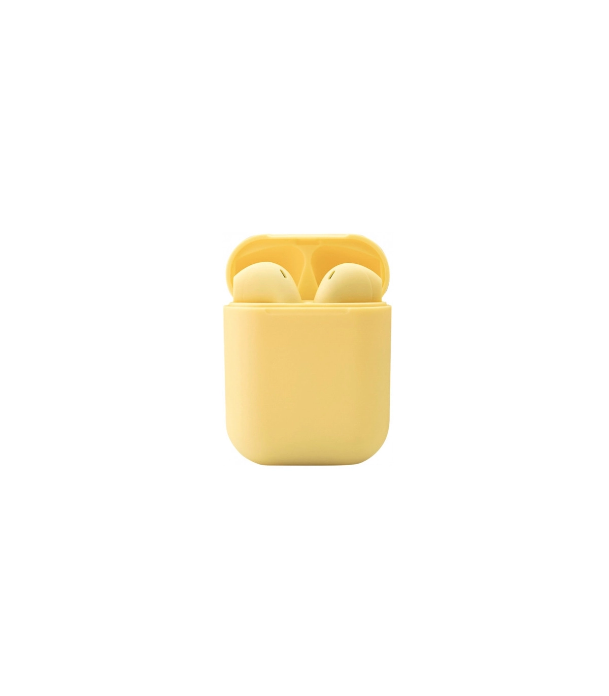 Бездротові блютуз навушники i12 TWS жовтого кольору в хорошій якості складання та додатковими програмами для Iphone, як в оригінальних AirPods.