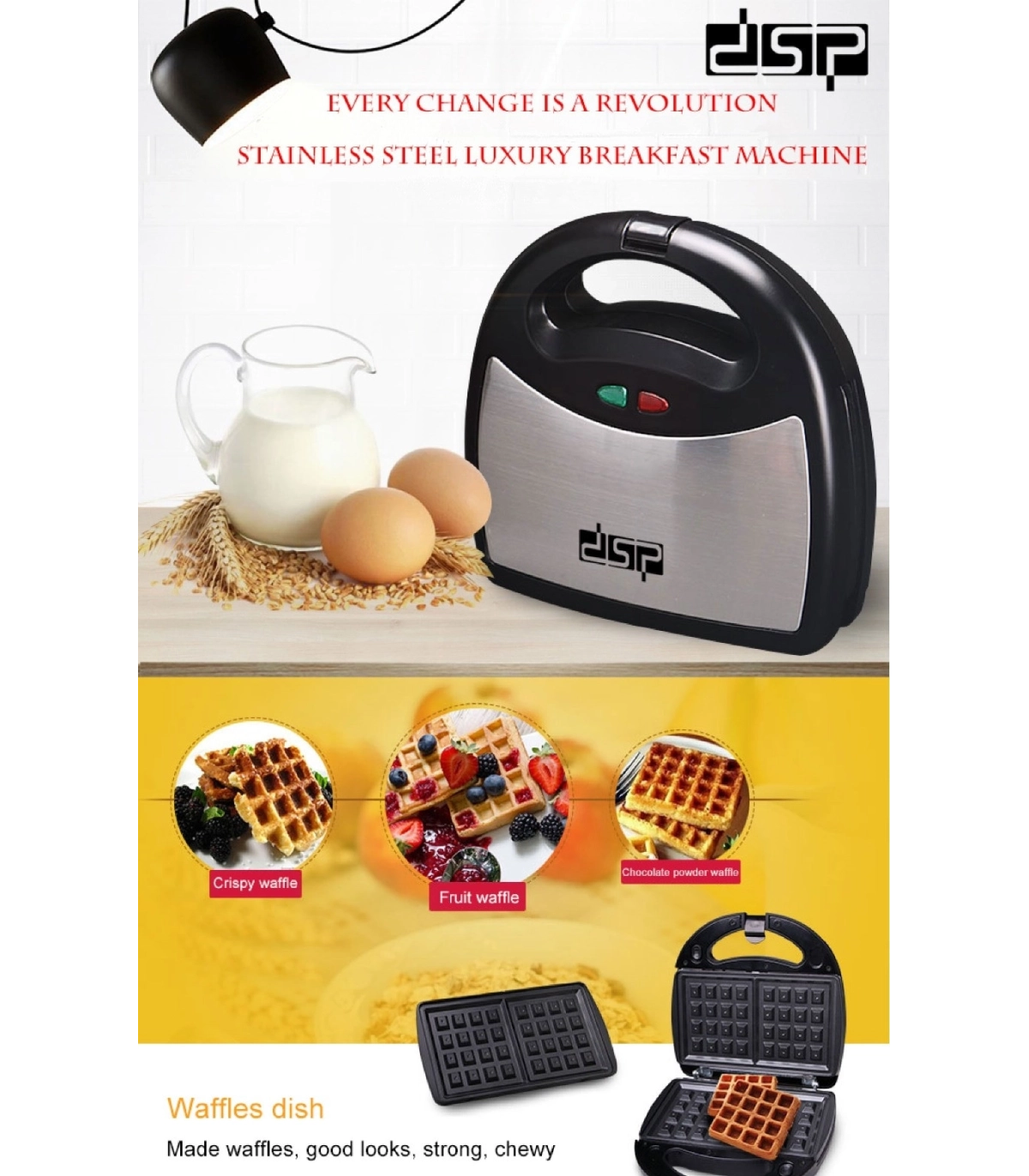 Сендвіч гриль з вафельницею DSP 3 в 1 KC1049 зроблено для того, хто має невеликі кухні і хоче заощадити на квадратних метрах, оскільки китайці примудрилися на площі 25 см вмістити гриль, сендвіч панель, тостер і вафельницю. Все це реалізовано завдяки 3 знімним лоткам із антипригарним тефлоновим покриттям.