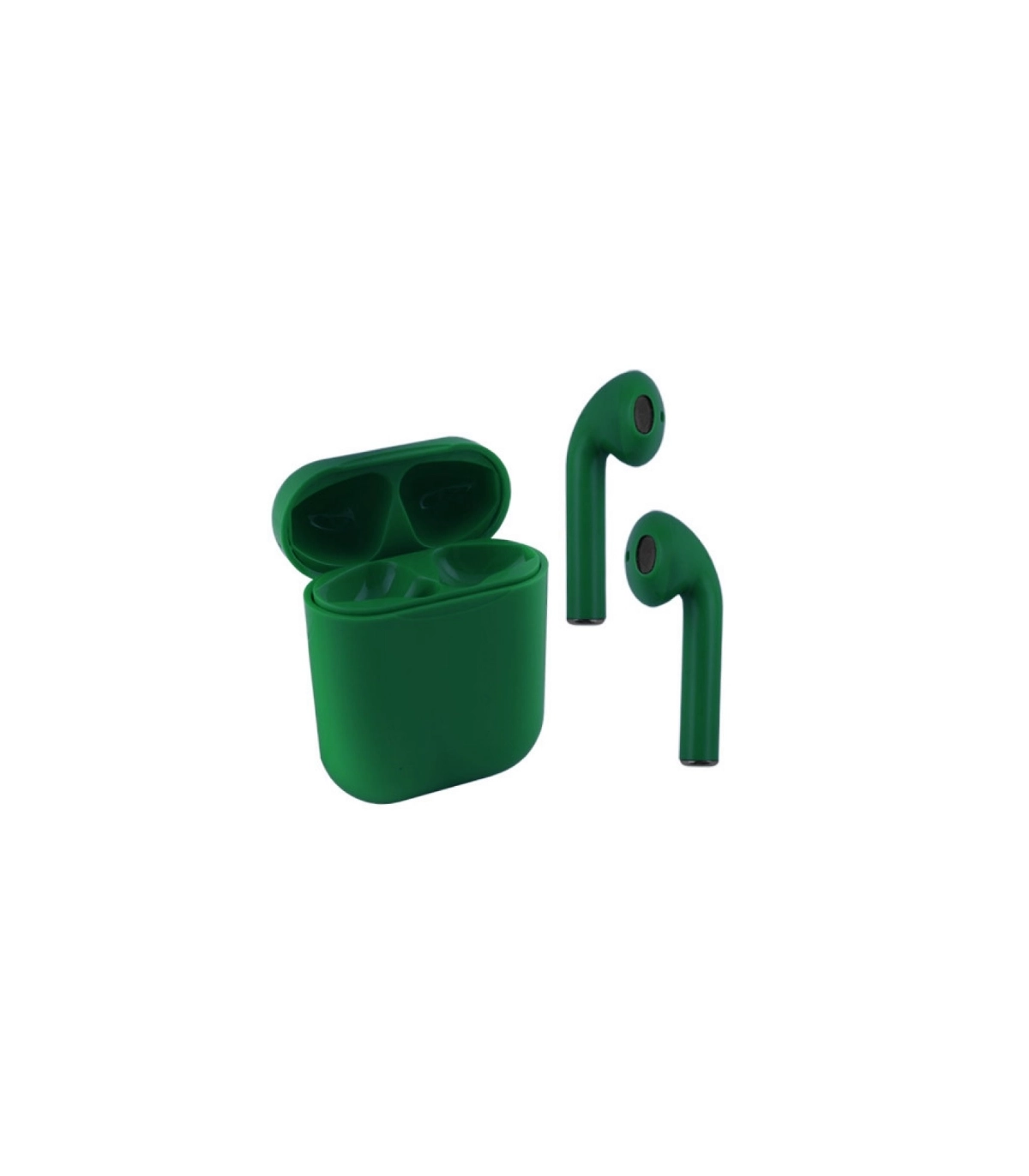 Блютуз навушники V33 серії Колор зроблений у зеленому кольорі з глакого софт тач пластику, як і кейс зарядки.