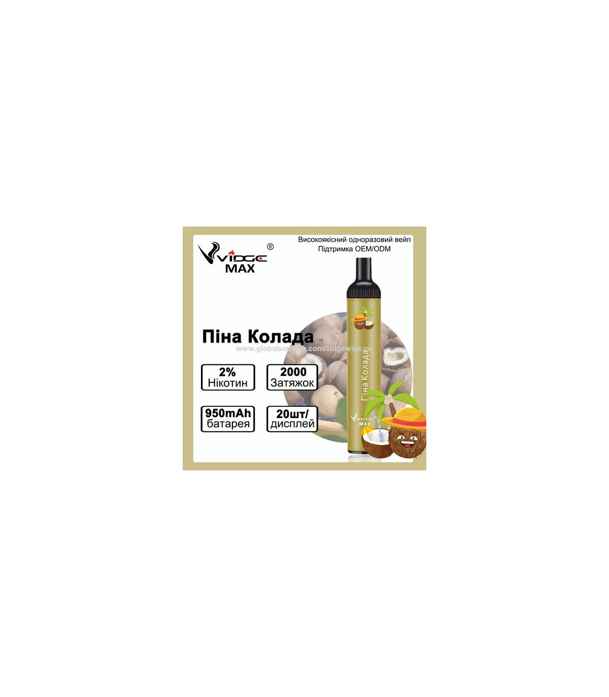 Одноразові сигарети Vidge MAX 2% Піна колада