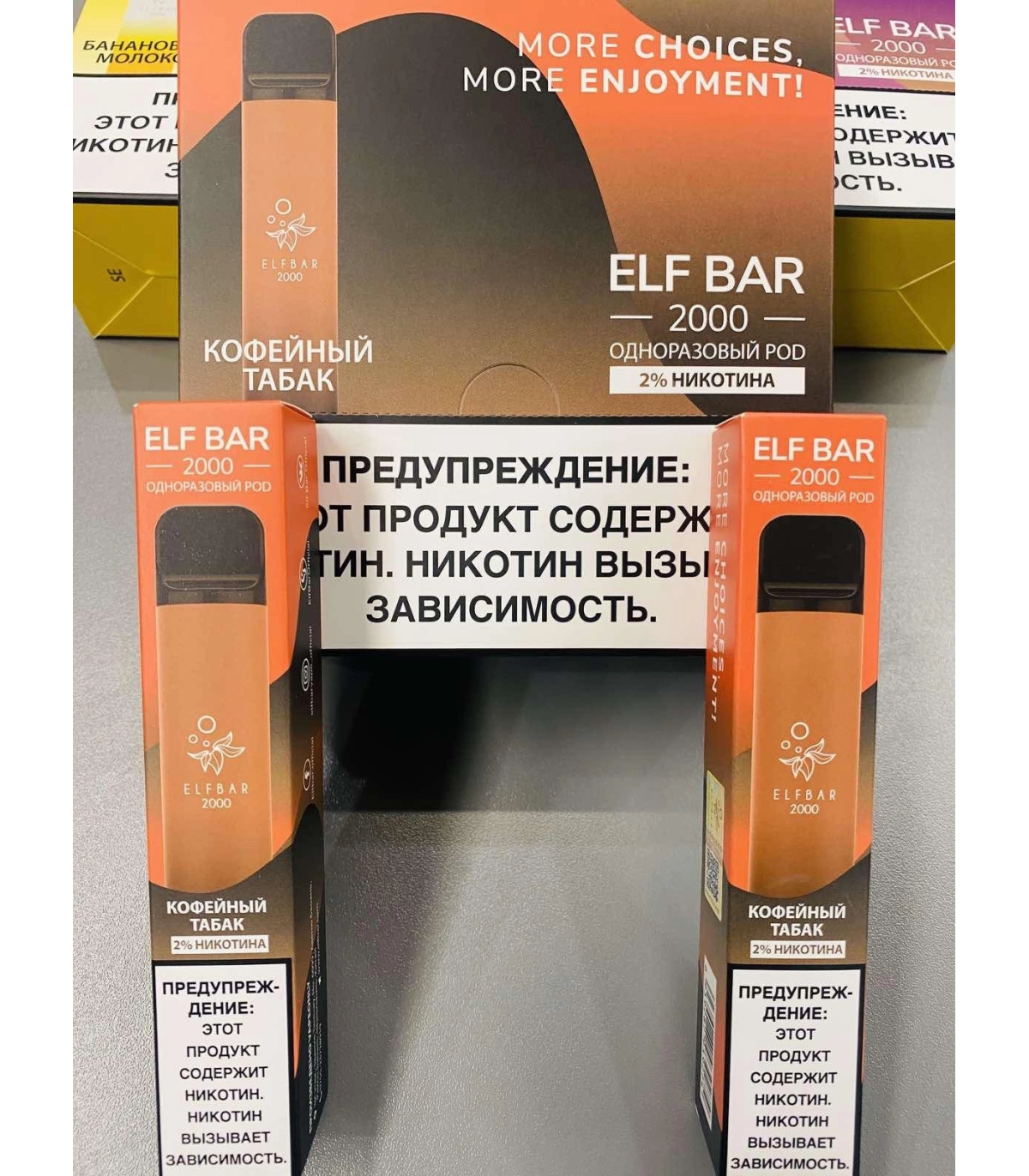 Купити китайські одноразові електронні сигарети Ельф Бар 2000 Кавовий тютюн оптом в Одесі на 7 км з доставкою по всій Україні Новою Поштою, Делівері, Джастін, Міст Експрес, Гюнсель, Автолюкс. Мінімальне замовлення одноразів Elf Bar 2000 Coffee Tobacco складає 10 блоків.