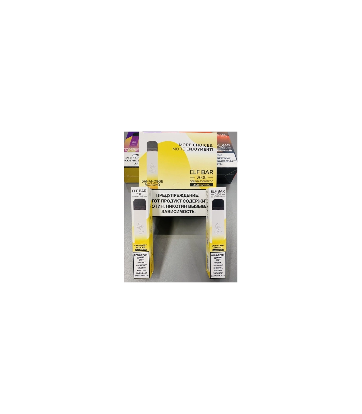 Для забезпечення максимальної якості постачання одноразових електронних сигарет Ельф Бар комплектується картонною коробкою та сейф-пакетом, який гарантує цілісність зарядки Elf Bar. Для оптових покупців Ельф Бар відправляється блоками, затягнутими у термоплівку. У кожному блоці по 10 штук одноразових цигарок Elf Bar 2000 одного смаку Бананове молоко.