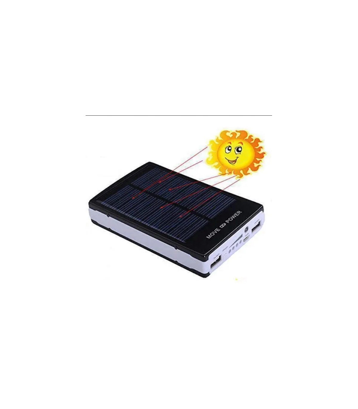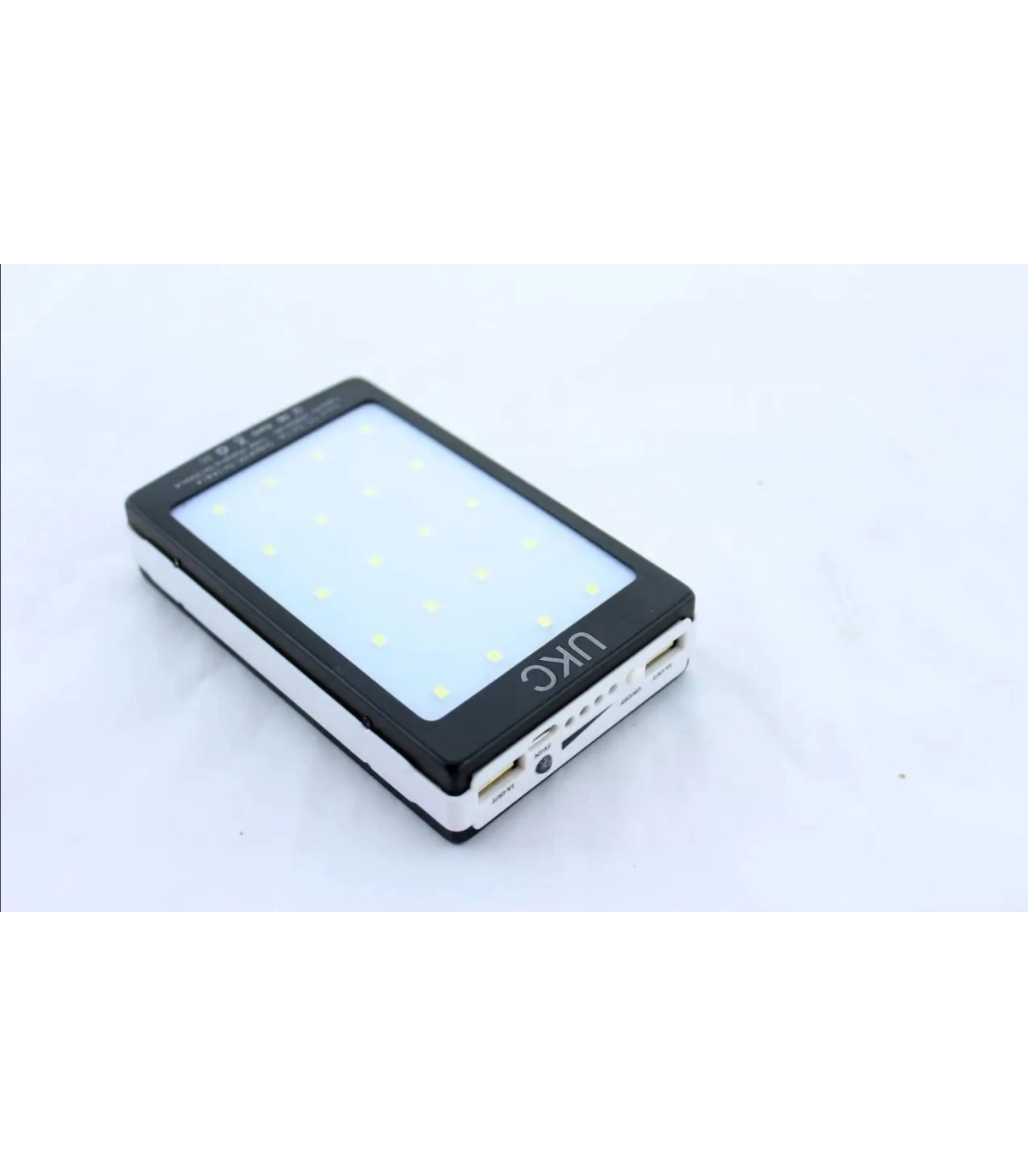 Представляємо Вашій увазі зовнішню батарею для смартфонів на 20 000 mAh із формальною сонячною батареєю. Корпус УВБ зроблений із пластику з прогумованими боками.
